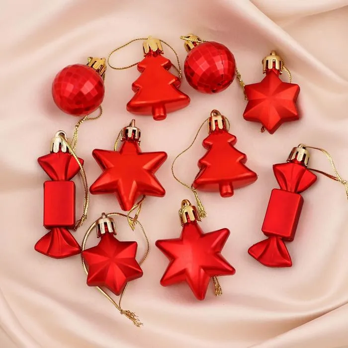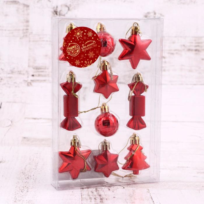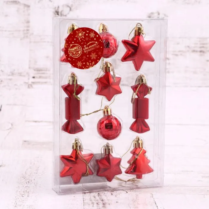 Ёлочные игрушки «Сюрприз», пластиковые, набор 10 шт., красный — Характеристики