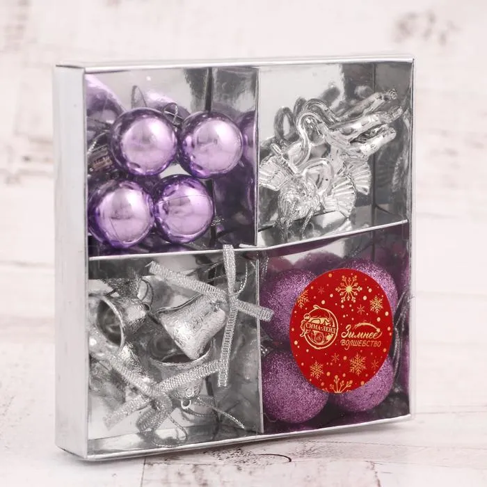 Этот набор превращает ёлку в пространство зимнего очарования, где важны не только традиции, но и индивидуальный вкус. Сиреневые оттенки и разнообразие форм создают атмосферу спокойного торжества. Используйте игрушки как основу или как дополнение к уже имеющемуся декору — они одинаково хорошо работают в разных интерьерах и подходах к новогоднему оформлению.
