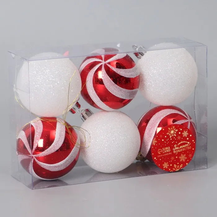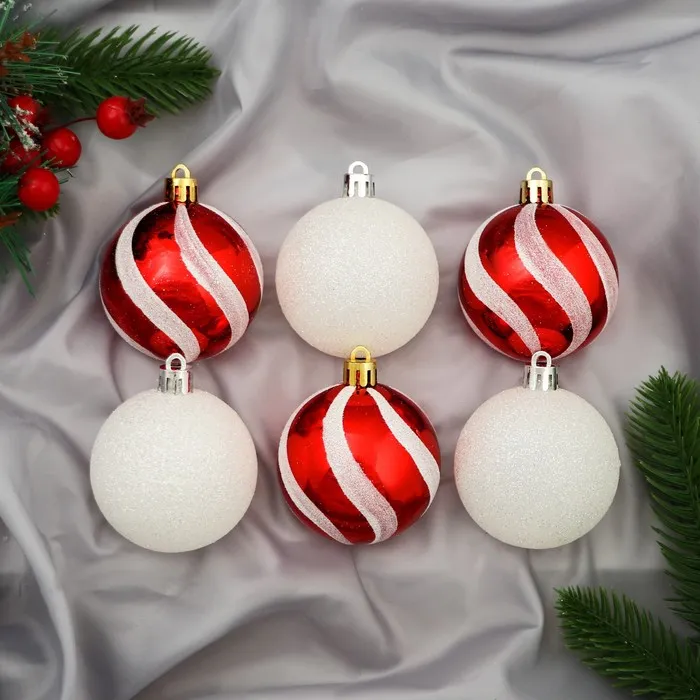 Ёлочные игрушки «Сюрприз», шары новогодние, набор 6 шт., d=6 см, красный/белый — Характеристики