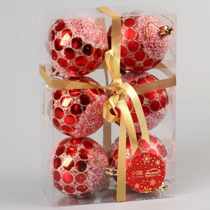 Ёлочные игрушки «Сюрприз», шары новогодние, набор 6 шт., d=7 см, красный — Характеристики