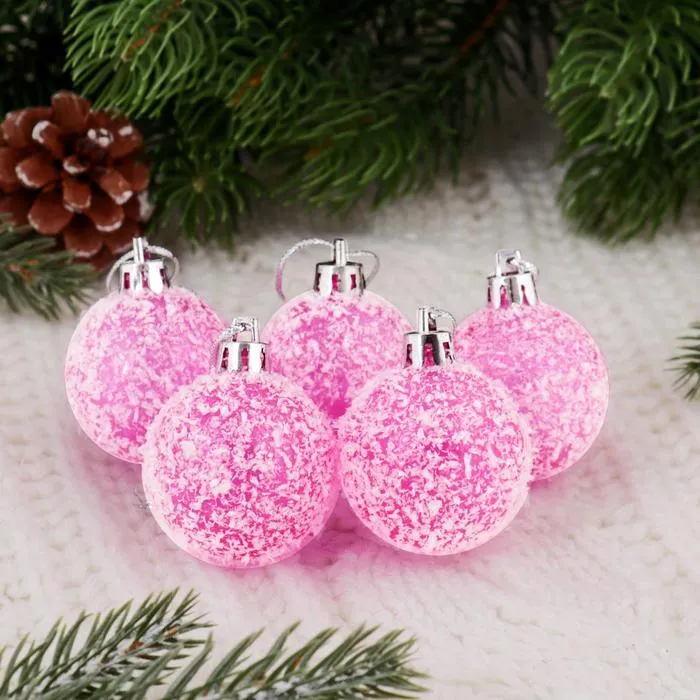 Розовые оттенки красиво сочетаются с золотыми и серебряными новогодними украшениями. Ёлочные игрушки «Снег», шары новогодние, набор 12 шт., d=4 см, малиново - белый — это частичка радости, которая преобразит интерьер и настроение!