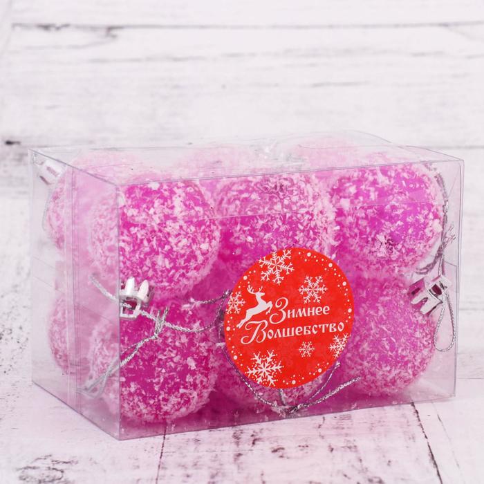 Ёлочные игрушки «Снег», шары новогодние, набор 12 шт., d=4 см, малиново - белый — Характеристики