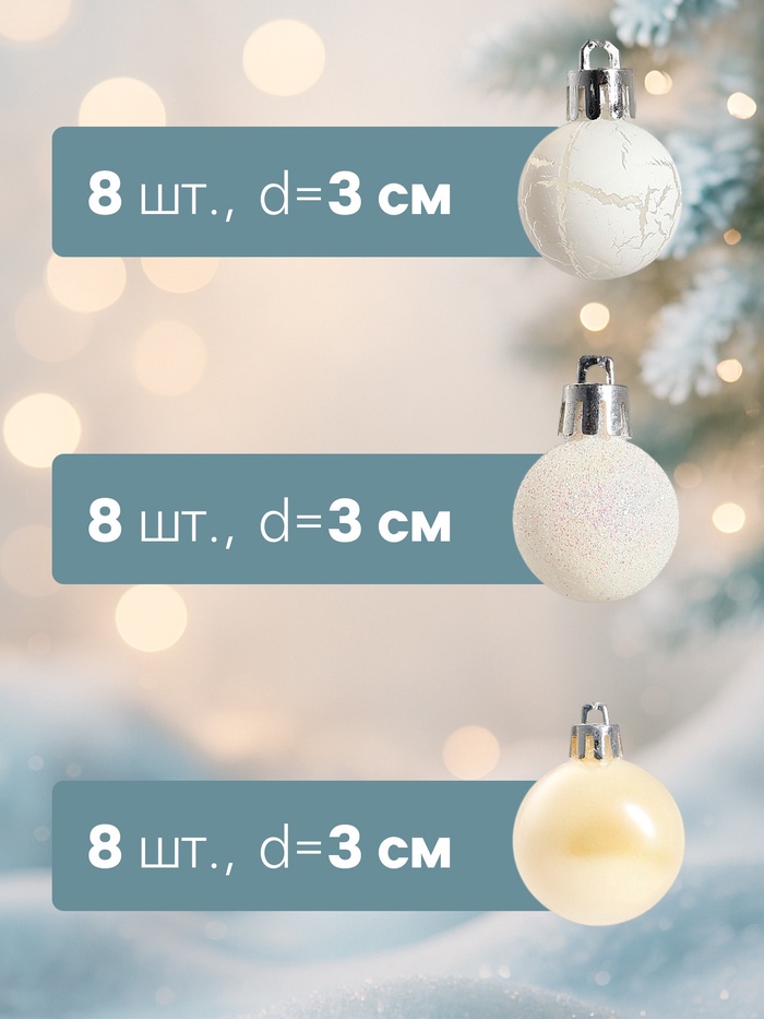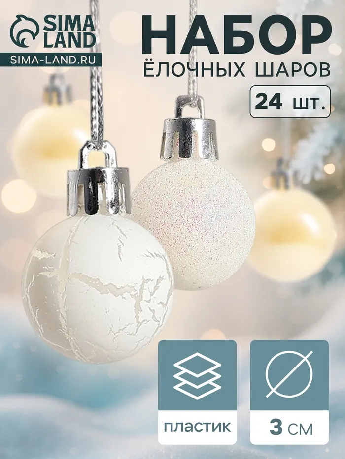 Ёлочные игрушки «Снег», шары новогодние, набор 24 шт., d=3 см, перламутровый/серебристый — Характеристики