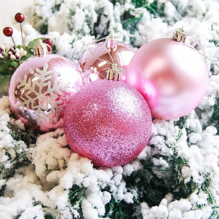 Набор из шести розовых ёлочных шаров диаметром 8 см выполнен в стиле шебби-шик с изящным рисунком. Эти украшения привносят в праздничный интерьер лёгкость и утончённость, создавая особую атмосферу новогоднего уюта.