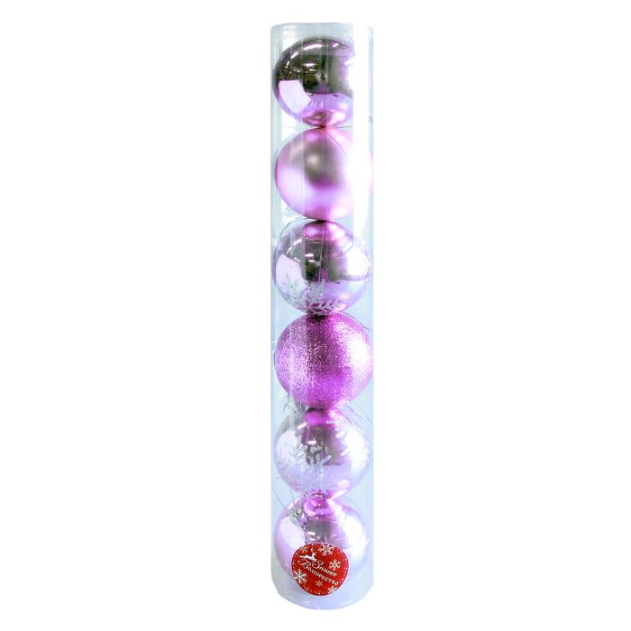 - Шесть шаров с декоративным рисунком, выполненных в нежном розовом оттенке.
