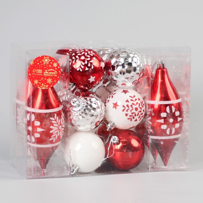 Ёлочные игрушки «Снежинки ассорти», новогодние, набор 16 шт., d=5.5 см, сосулька 13.5 см, МИКС