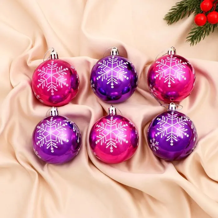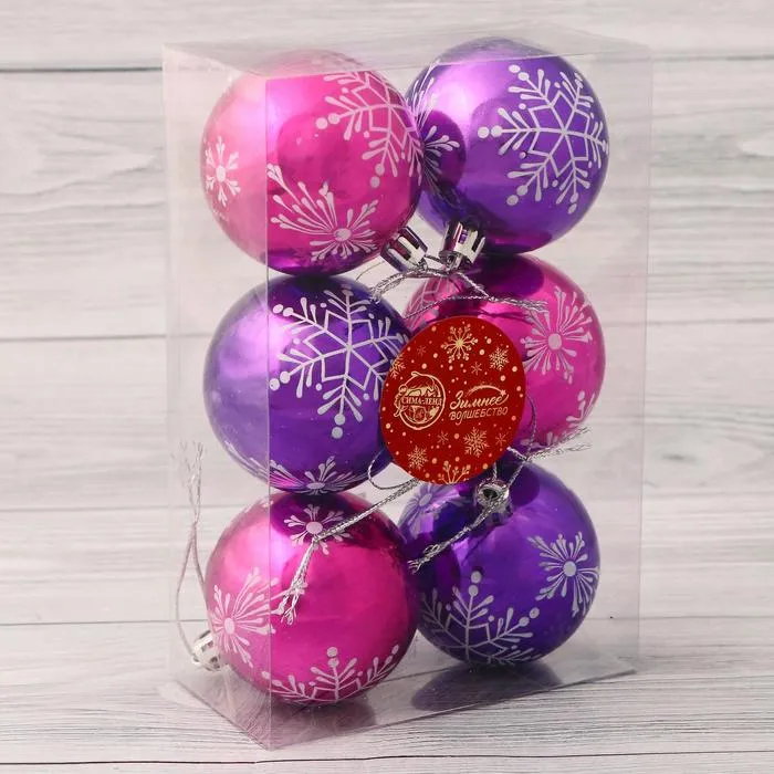 Ёлочные игрушки «Снежная феерия», шары новогодние, d=6 см, набор 6 шт., сиреневый фиолетовый — Характеристики