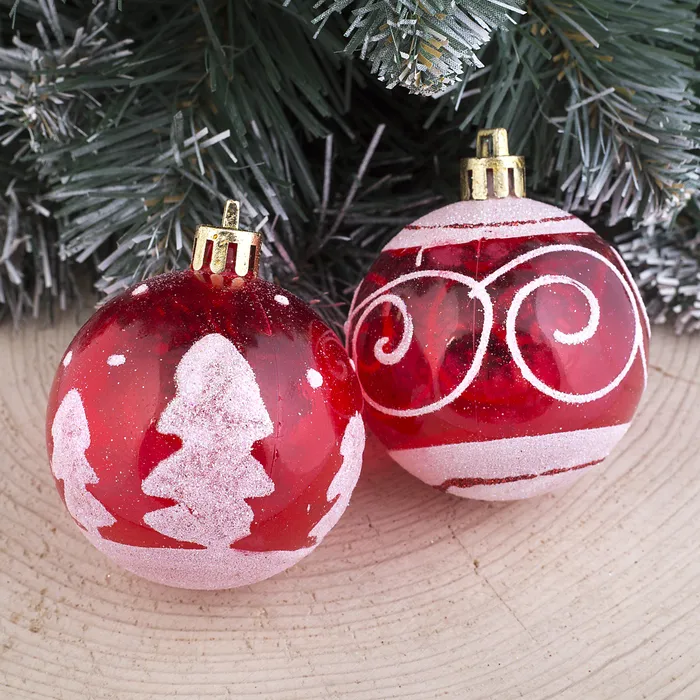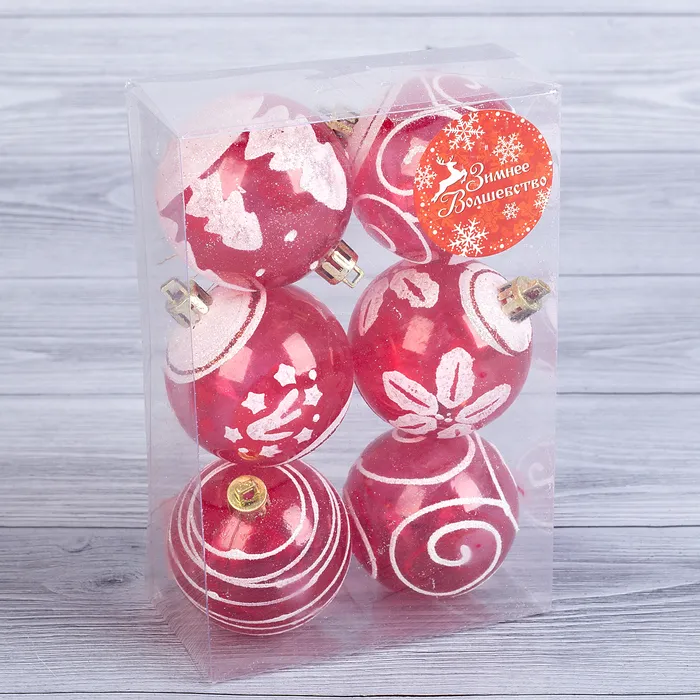 Ёлочные игрушки «Снежная иллюзия», шары новогодние, набор 6 шт., d=5.5 см, красный/белый — Характеристики