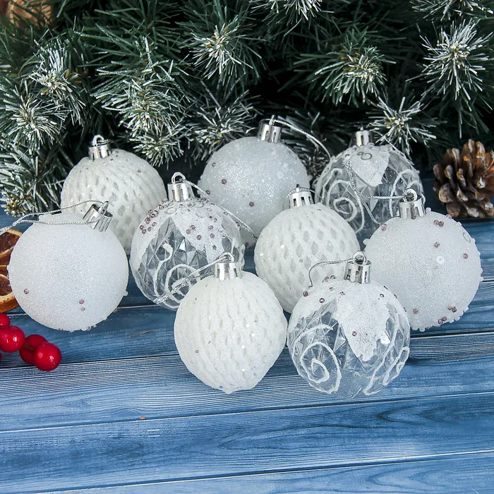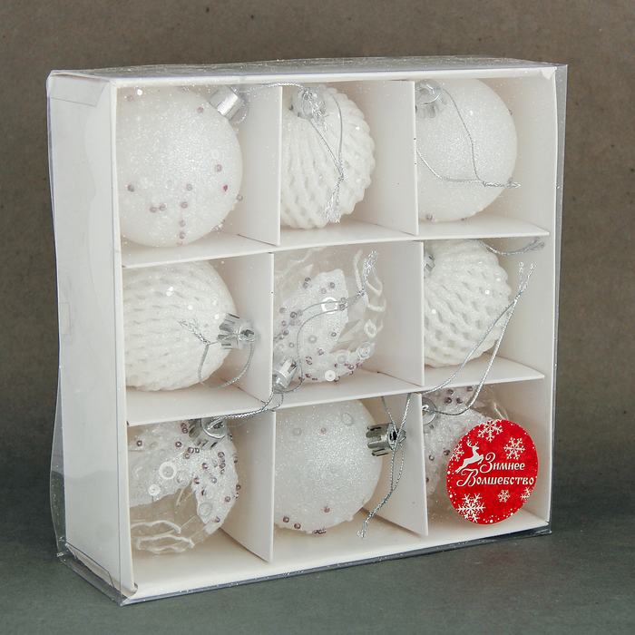 Ёлочные игрушки «Снежная изморозь», шары пластиковые, d=6 см, набор 9 шт., белый — Характеристики