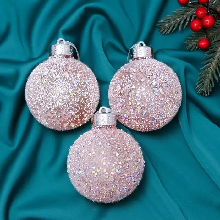 Новогодние шары — это яркий и запоминающийся акцент для праздничной ёлки. Три пластиковых игрушки диаметром 8 см станут изысканным элементом декора, добавляя интерьеру зимней сказочности и блеска без излишней вычурности.