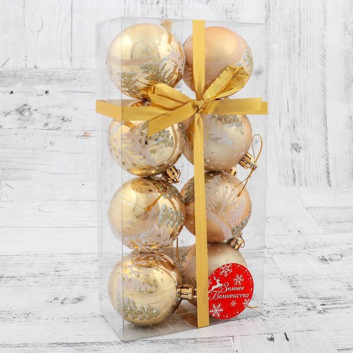 Ёлочные игрушки «Снежные ёлки», пластиковые, набор 8 шт., d=6 см, золотистый — Характеристики