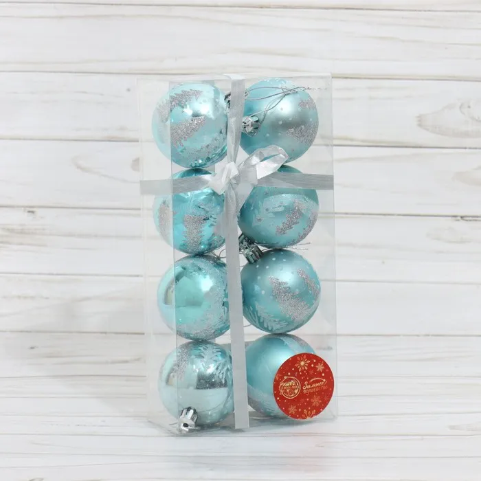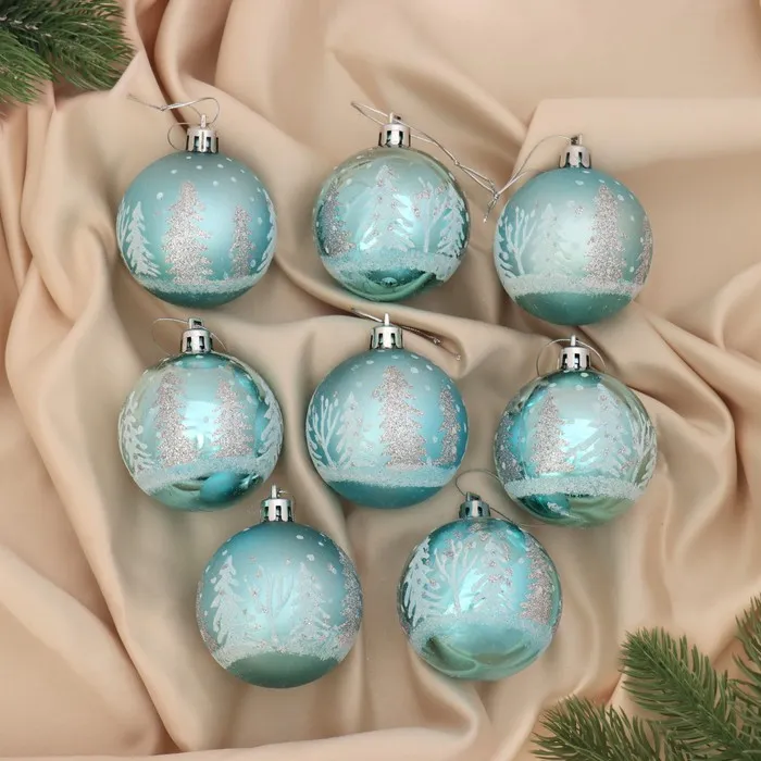 Ёлочные игрушки «Снежные ёлки», шары новогодние, d=6 см, 8 шт., голубой — Характеристики