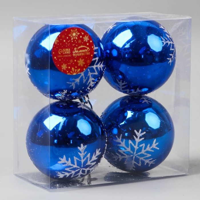 Ёлочные игрушки «Снежок», шары новогодние, d=8 см, набор 4 шт., бело-синий — Характеристики