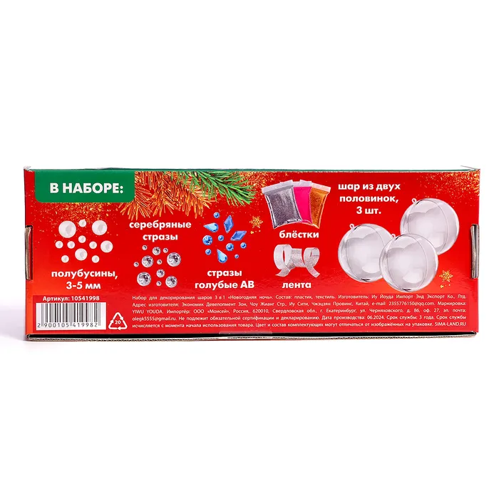 Ёлочные игрушки своими руками на новый год. Набор для декорирования шаров 3 в1 «Чудесная ночь», набор для творчества — Характеристики