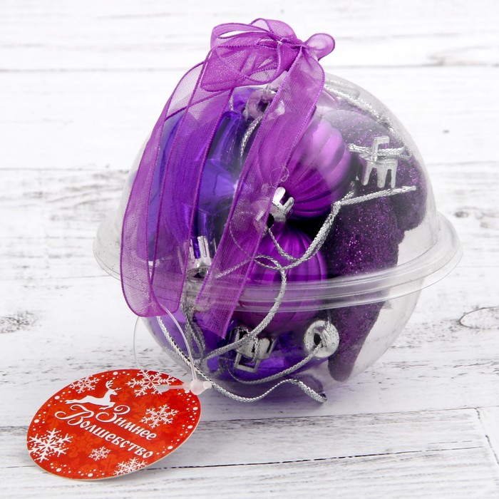Ёлочные игрушки «Талла», шары новогодние, набор 12 шт. (4 шара, 2 сосульки, 6 звёзд), фиолетовые — Характеристики