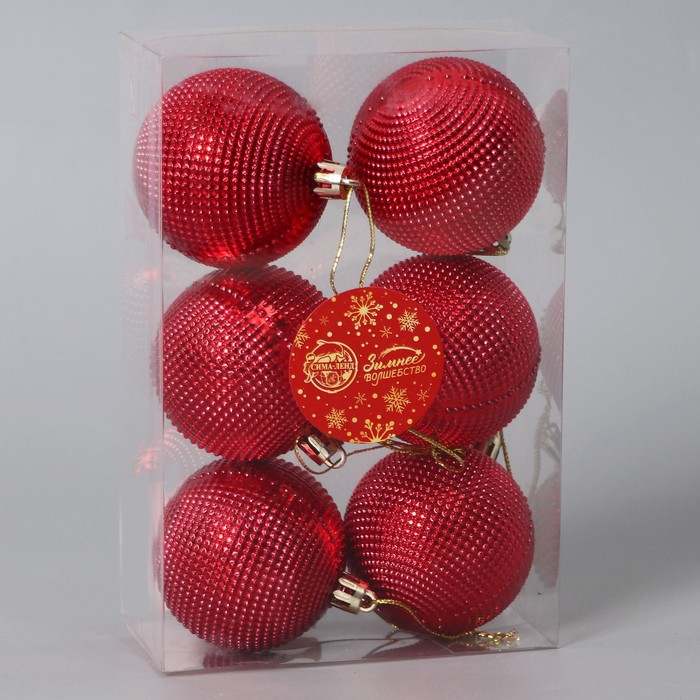 Ёлочные игрушки «Текстура», шары новогодние, d=6 см, набор 6 шт., красный