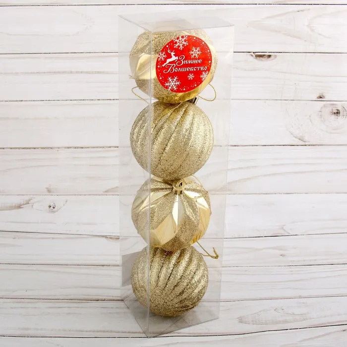 Ёлочные игрушки «Теодора», шары новогодние, пластик, набор d=7 см, 4 шт., золотистый — Характеристики