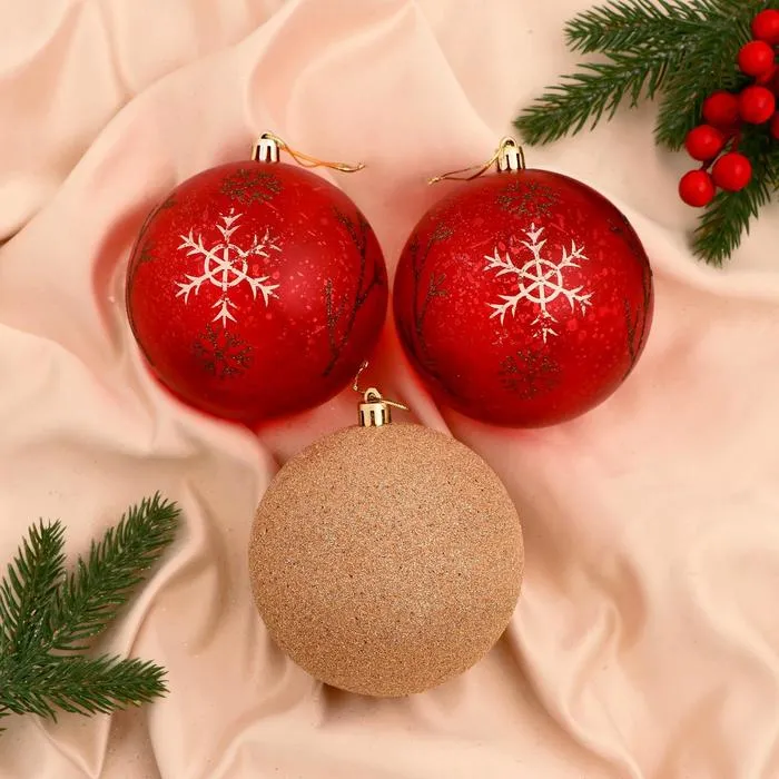 Ёлочные игрушки «Тихий вечер ассорти», шары новогодние, d=10 см, набор 3 шт., золото красный — Характеристики