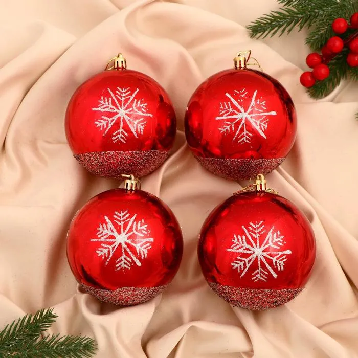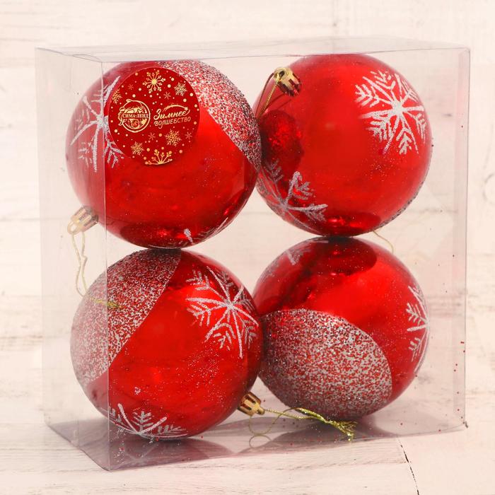 Ёлочные игрушки «Тихий вечер», шары новогодние, d=10 см, набор 4 шт., красный — Характеристики