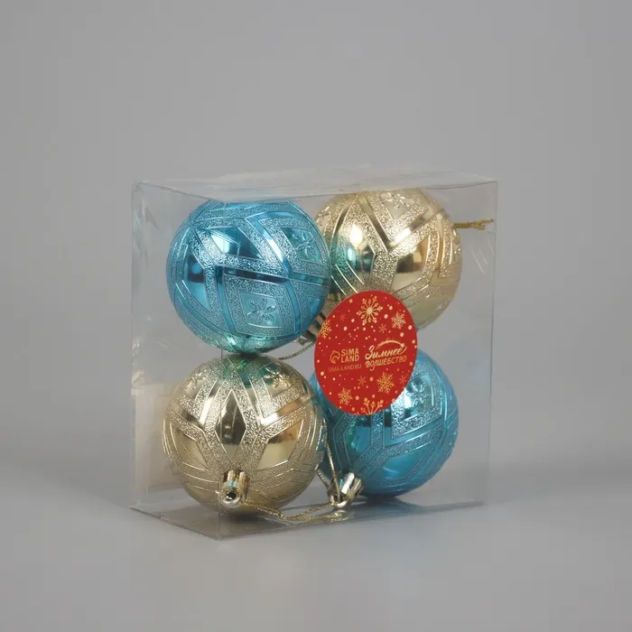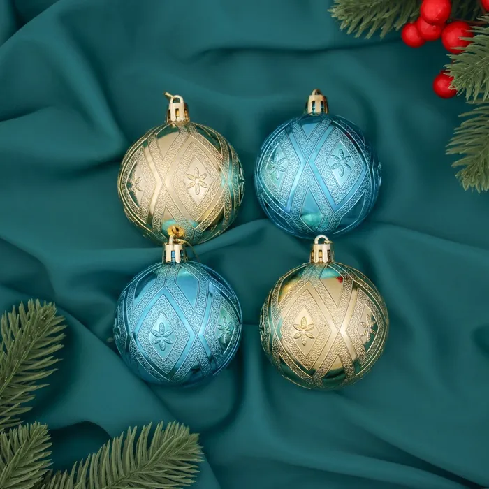 Ёлочные игрушки «Цветение», шары новогодние, d=6 см, набор 4 шт., золотисто-голубой — Характеристики