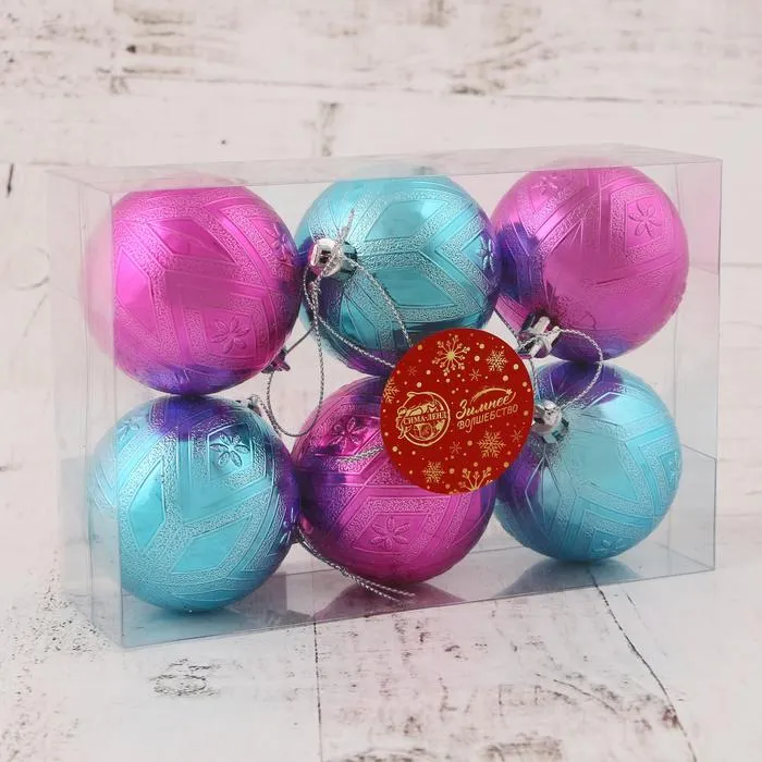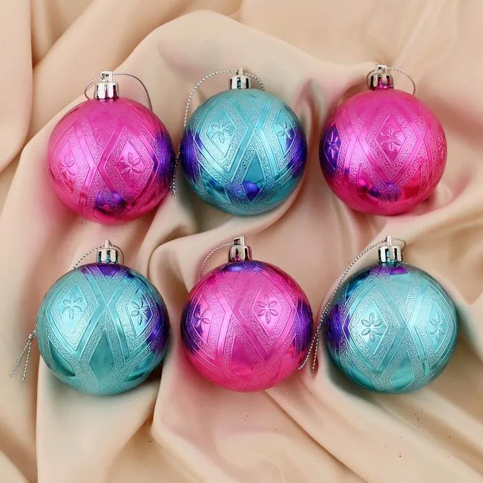 Ёлочные игрушки «Цветение», шары новогодние, d=6 см, набор 6 шт., розовый голубой — Характеристики
