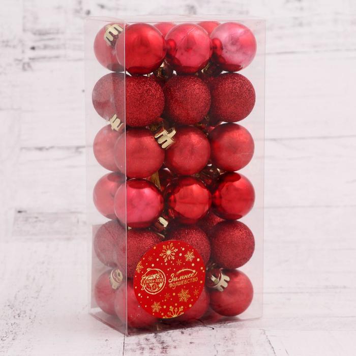 Ёлочные игрушки «Туманный блеск», шары новогодние, d=3 см, набор 36 шт., красный — Характеристики