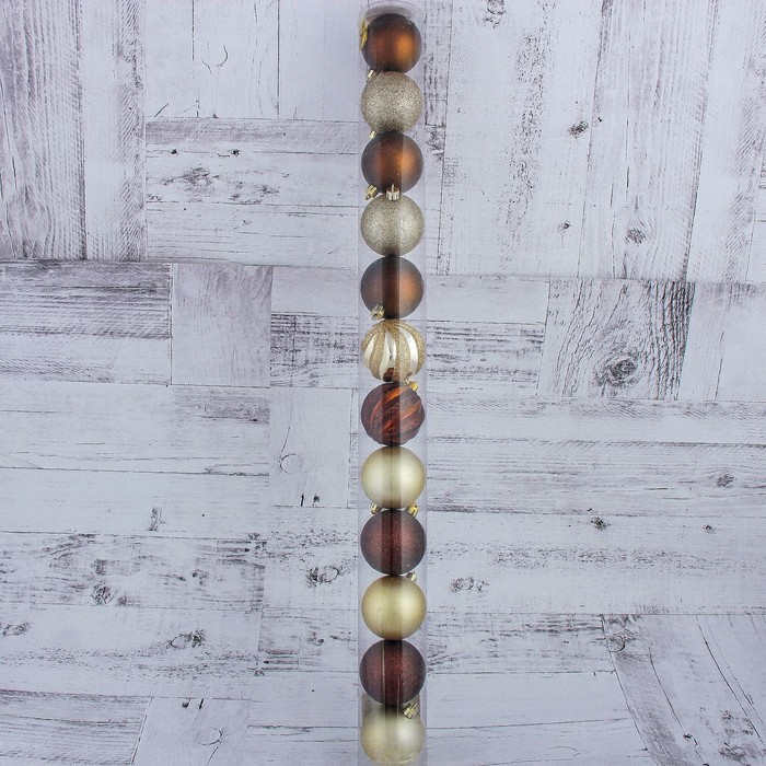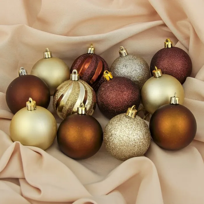 Ёлочные игрушки «Улыбка», d=6 см, набор 12 шт., коричневый/золотистый — Характеристики