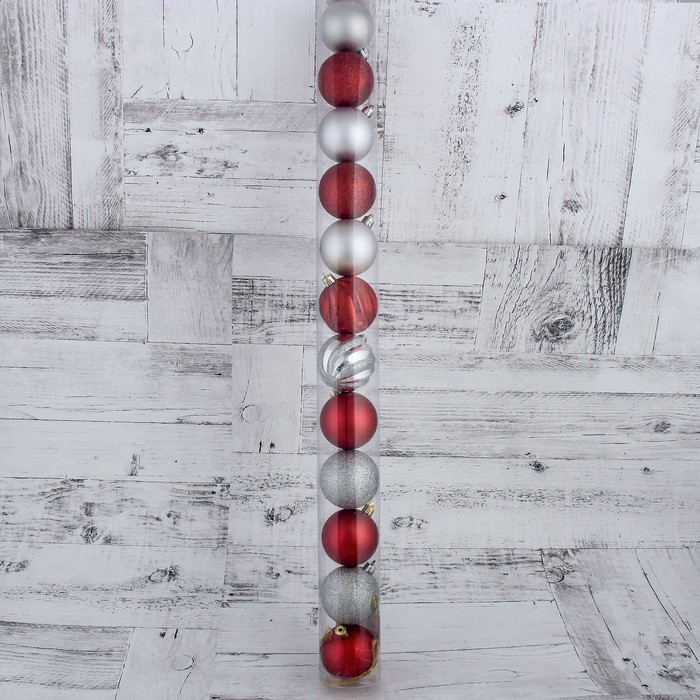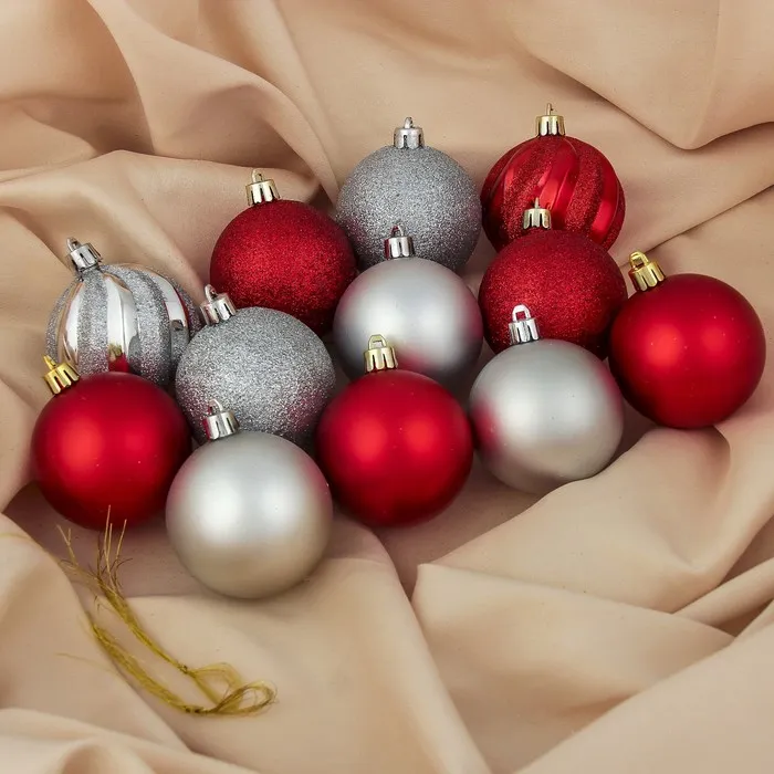 Ёлочные игрушки «Улыбка», шары новогодние, набор 12 шт., d=6 см, серебристый/красный — Характеристики