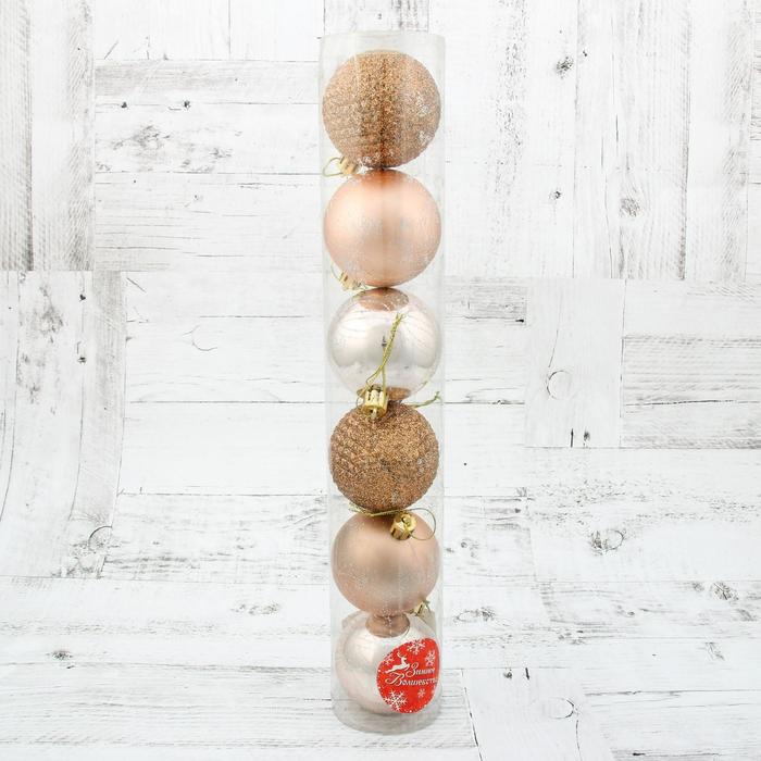 Ёлочные игрушки «Узорный МИКС», шары новогодние, d=6 см, набор 6 шт., кремовый — Характеристики