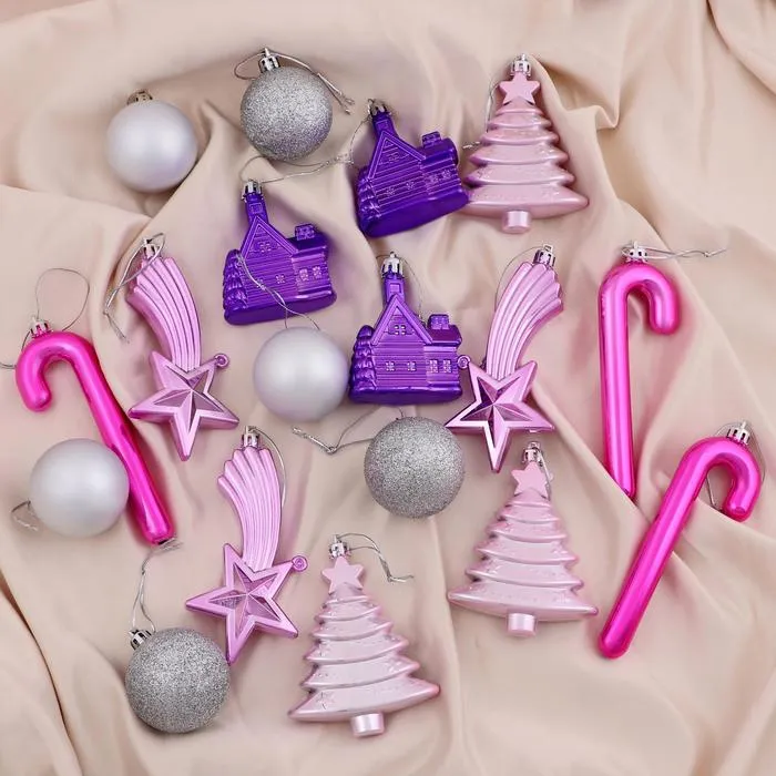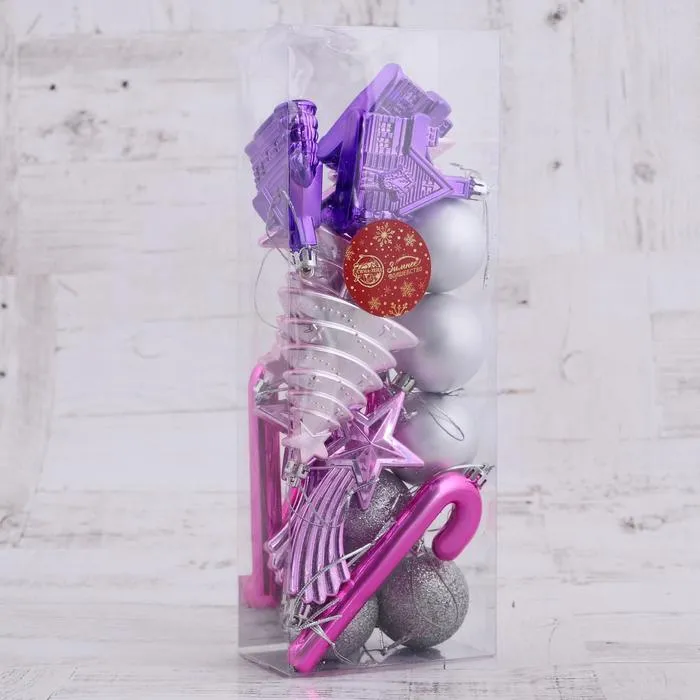 Ёлочные игрушки «Вечер чуда», шары новогодние, набор 18 шт., серебристый/сиреневый — Характеристики