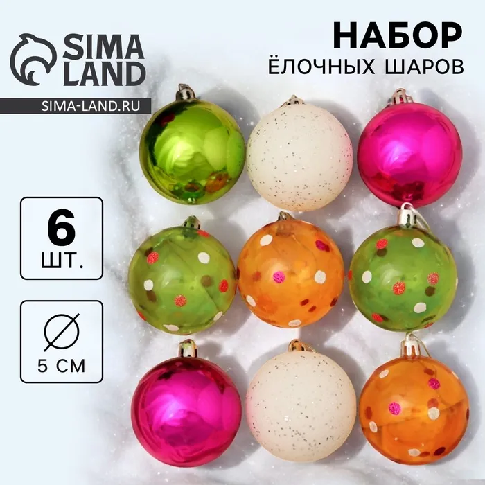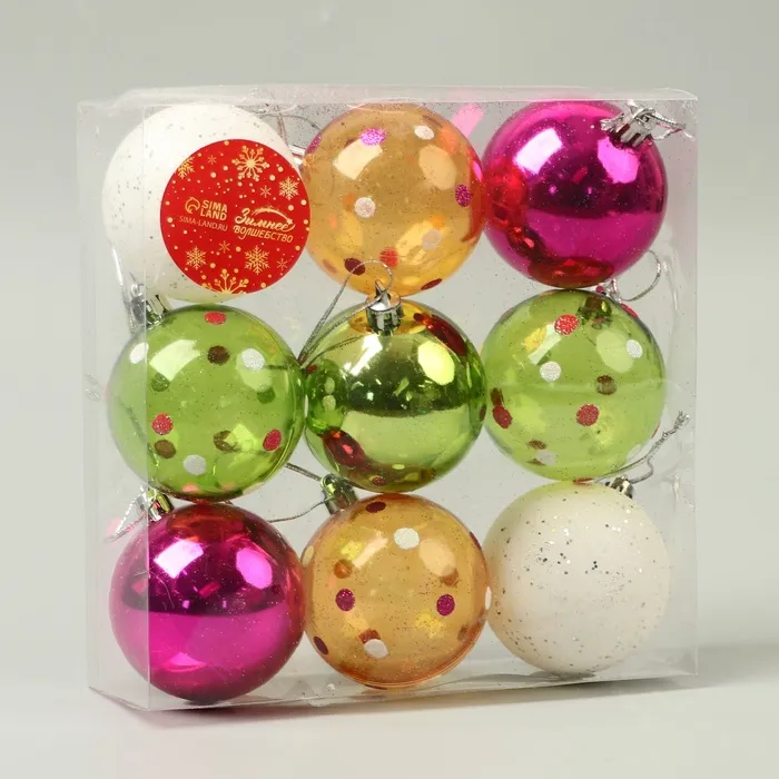 Ёлочные игрушки «Вечеринка», шары новогодние, d=5.5 см, набор 9 шт., МИКС — Характеристики