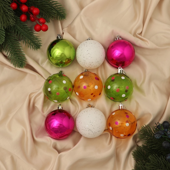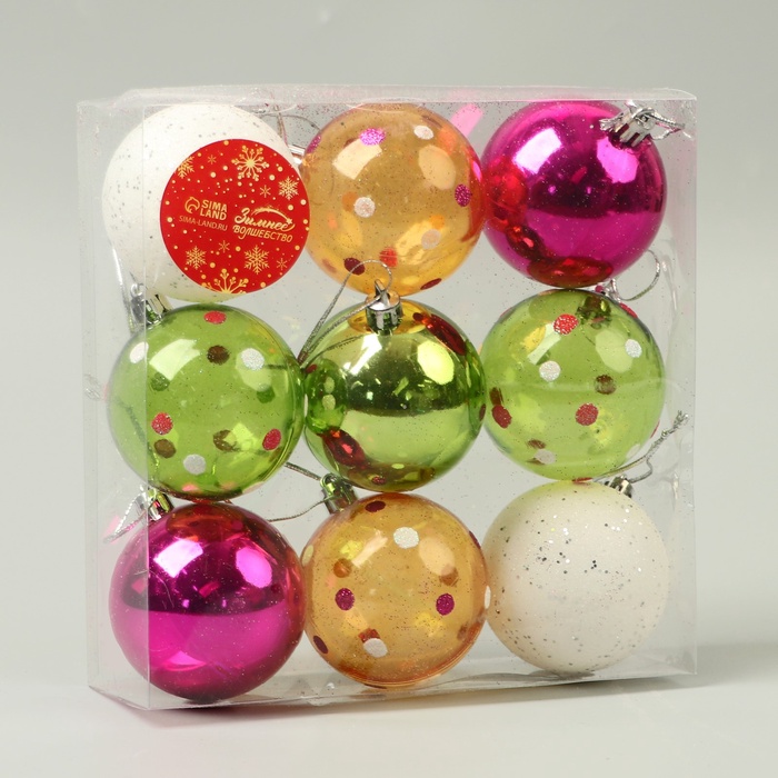 Ёлочные игрушки «Вечеринка», шары новогодние, d=5.5 см, набор 9 шт., МИКС