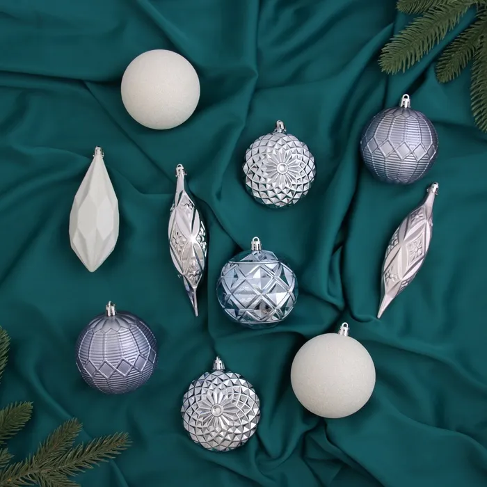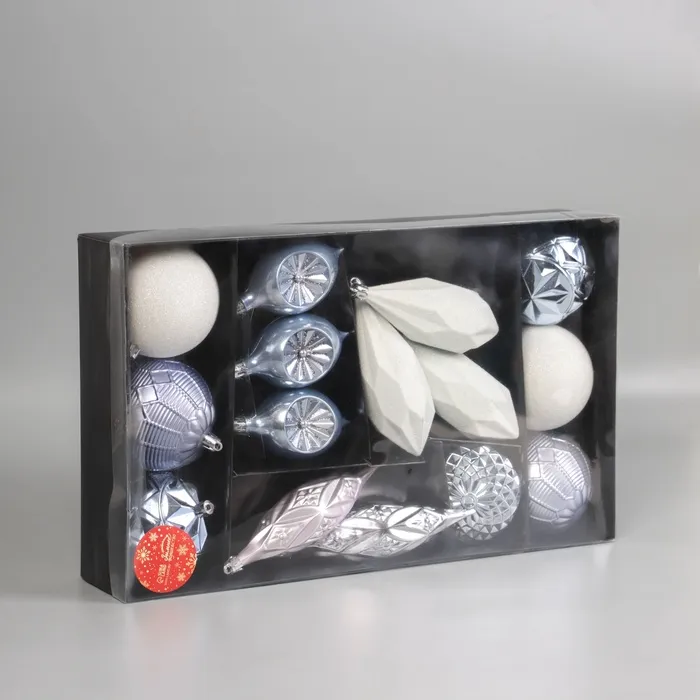 Ёлочные игрушки «Вереница», новогодние, набор 16 шт. (8 шаров, 8 сосулек), сиренево - белый — Характеристики