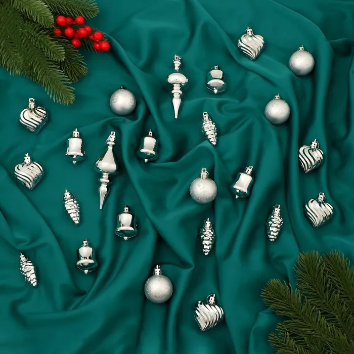 Ёлочные игрушки «Весёлый завиток», новогодние, набор 24 шт., 4 см, серебро — Характеристики
