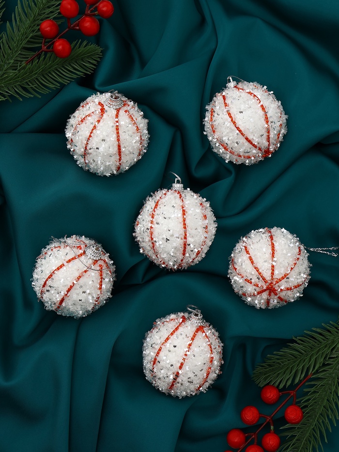 Набор из шести белых ёлочных шаров диаметром 6 см украшен тонким рисунком, который добавляет лёгкость и элегантность праздничному оформлению. Пластиковые шары гармонично впишутся в любой зимний интерьер, создавая атмосферу чистоты и свежести.
