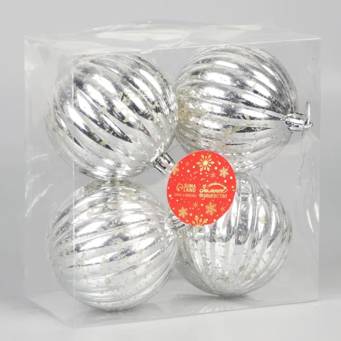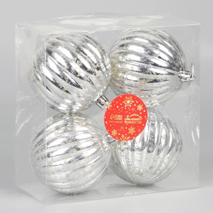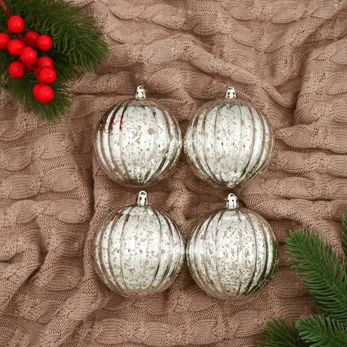 Ёлочные игрушки «Винтаж», шары новогодние, d=8 см, набор 4 шт., полосы, серебро — Характеристики