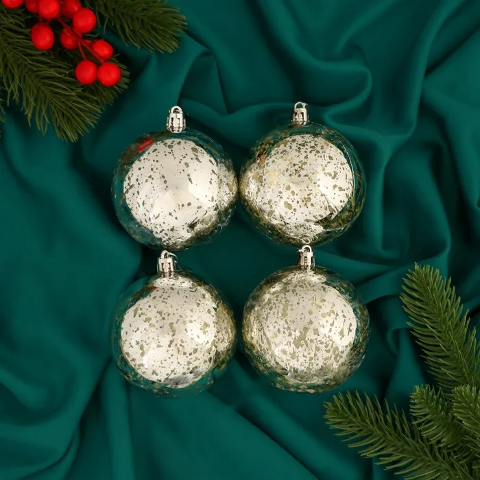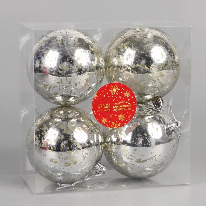 Ёлочные игрушки «Винтаж», шары новогодние, d=8 см, набор 4 шт., серебро — Характеристики