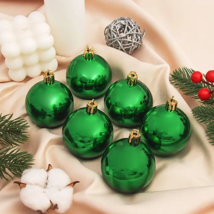 Создайте сочное новогоднее настроение. Ёлочные игрушки «Винтажный глянец», шары новогодние, 6 шт., набор d=6 см, зелёный окутают помещение праздничной негой. Зелёные ёлочные украшения не будут смотреться скучно, если использовать их в разных оттенках.