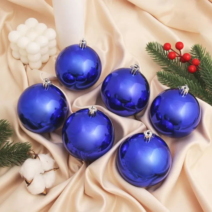 Ёлочные игрушки «Винтажный глянец», шары новогодние, набор 6 шт., d=8 см, синий — Характеристики