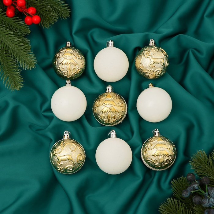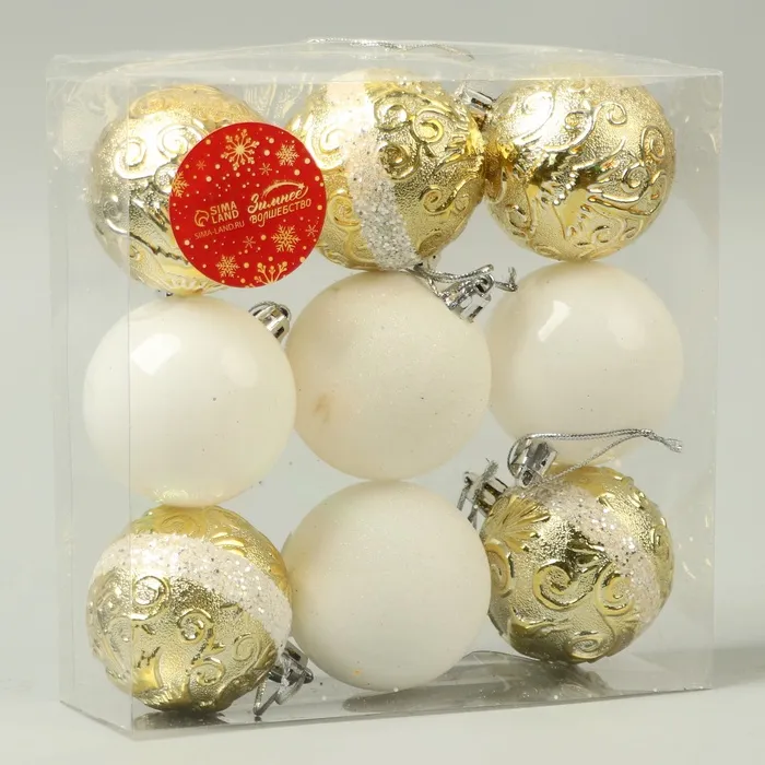 Ёлочные игрушки «Виорика», шары новогодние, d=5.5 см, 9 шт., завитки, белый/золото — Характеристики