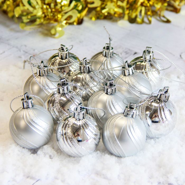 Ёлочные игрушки «Волна», шары новогодние, d=4 см, 12 шт., серебро — Характеристики