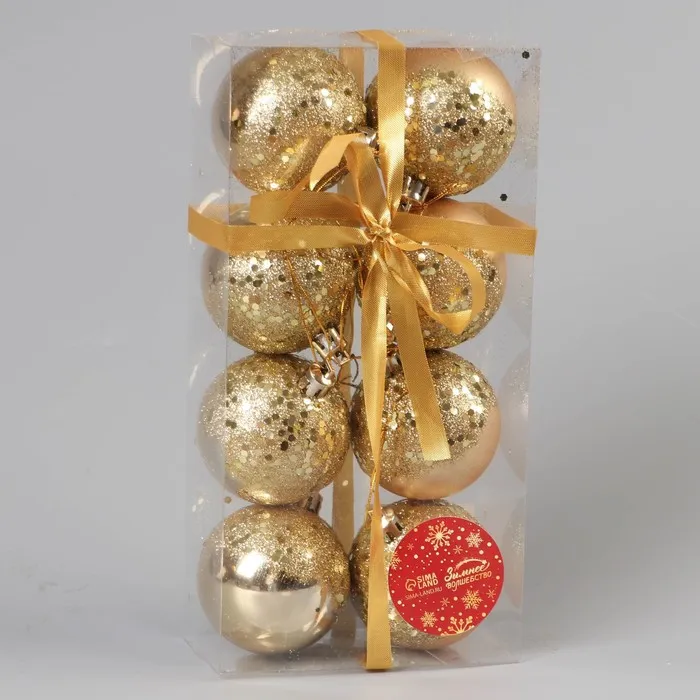 Ёлочные игрушки «Волшебство», пластиковые, набор 8 шт., d=5.5 см, золотистый — Характеристики