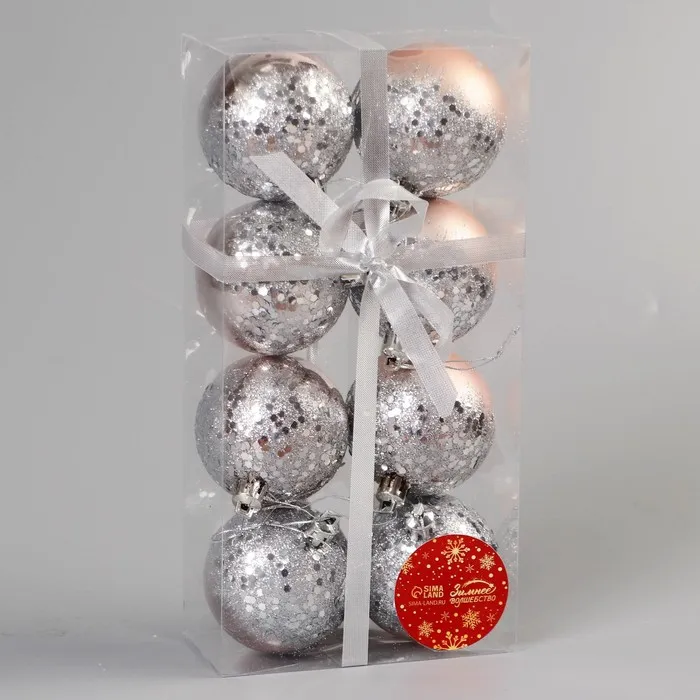 Ёлочные игрушки «Волшебство», шары новогодние, d=5.5 см, набор 8 шт., розовый — Характеристики