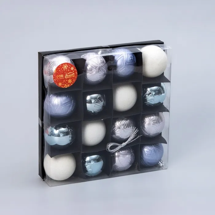 Ёлочные игрушки «Загадка» , шары новогодние, d=6 см, набор 16 шт., серебристо-белый — Характеристики