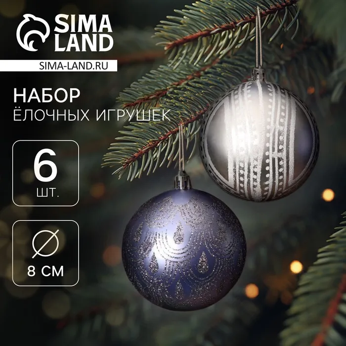 Ёлочные игрушки «Загадочный узор», шары новогодние, d=8 см, набор 6 шт. — Характеристики