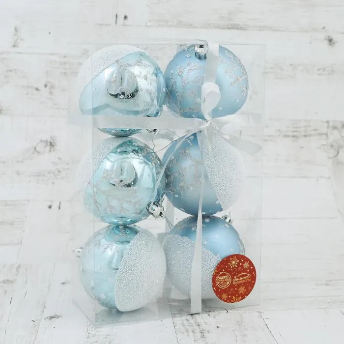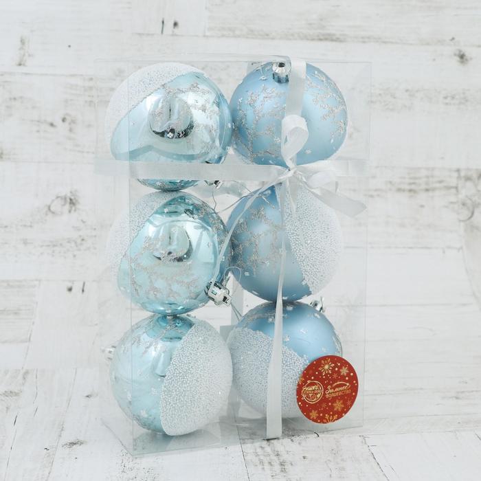 Ёлочные игрушки «Заснеженный лес», шары новогодние, d=8 см, набор 6 шт., бело-голубой — Характеристики