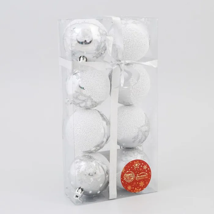 Ёлочные игрушки «Заснеженный лес», шары новогодние, набор 8 шт., d=6 см, серебристый — Характеристики