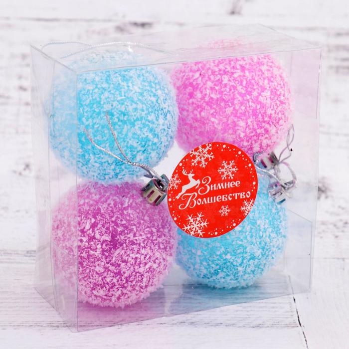 Ёлочные игрушки «Заснеженный», шары новогодние, d=6 см, набор 4 шт., малиновый/голубой — Характеристики