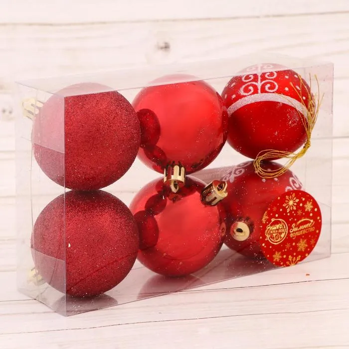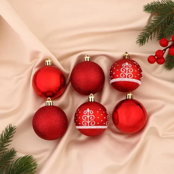 Новогодние шары красного цвета, 6 см в диаметре, набор из 6 штук — это яркий и запоминающийся элемент декора для праздничной ёлки. Поверхность с рисунком «завитки» добавляет игрушкам объёмности и стилистической выразительности. Эти украшения подойдут как для традиционного оформления, так и для современного интерьера.