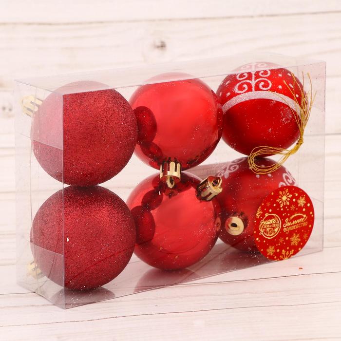Ёлочные игрушки «Завитки», шары новогодние, набор 6 шт., d=6 см, красный — Характеристики